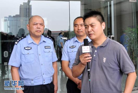 8月14日,民警王曉渝(后左一)、周縉(后左二)在接受媒體采訪。 8月14日6時45分許,重慶沙坪壩區微電園治安派出所民警周縉、王曉渝在著便裝執行任務時發現周克華,并迅速進行跟蹤。周克華有所察覺,行至童家橋附近一小巷內,周克華借助地形開槍向民警射擊,共射擊3槍。民警對周克華迅速包圍,形成夾角,4槍擊斃周克華。辦案民警稱,擊斃周克華后,現場繳獲手槍兩支、彈夾3個、子彈若干。