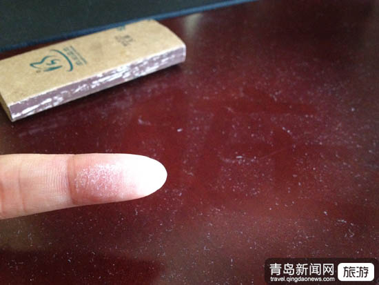 ????在房間外等候半個(gè)小時(shí)后,工作人員才將房間打掃完畢,可當(dāng)記者進(jìn)入房間后,卻發(fā)現(xiàn)了很多難以忍受的問題,記者發(fā)現(xiàn)入住房間的寫字臺上,落滿了一層厚厚的灰塵,看樣子已經(jīng)很久沒有擦過了,輕輕一抹,手指上就是一層厚厚的灰塵,而床邊的床頭柜也同樣如此。記者隨后立即找到酒店工作人員,要求重新打掃衛(wèi)生,可酒店工作人員卻告訴記者,需要找當(dāng)時(shí)打掃衛(wèi)生的人來清理。等待半個(gè)小時(shí)候酒店的工作人員才重新出現(xiàn)擦了桌子。