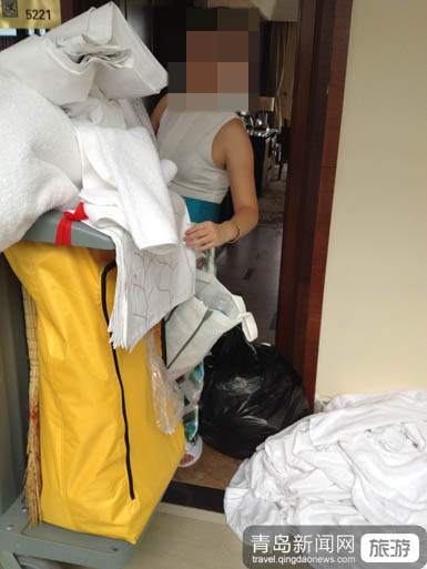 ????此時(shí),一位穿著正規(guī)工作服的推著一輛裝滿清潔用品的工作人員又來到房間門外,經(jīng)過交談才得知,房間內(nèi)那兩個(gè)身著便服的也是酒店的工作人員,而此時(shí)又有一位身著藍(lán)色工作服的酒店工程部工作人員進(jìn)入房間,和負(fù)責(zé)專職打掃衛(wèi)生的工作人員一起打掃。