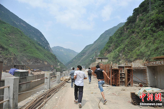 9月8日,云南彝良地震震中洛澤河鎮附近道路上,不斷發生的余震引發山體落石。截止8日早上8時,云南彝良地震災區發生余震161次,最大余震4.4級。圖為余震發生時,山腳邊的民眾奔向安全地帶。