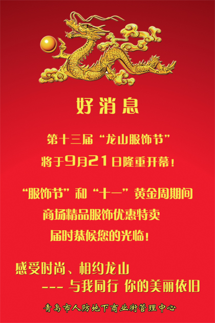 熱烈慶祝第十三屆青島“龍山服飾節”9月21日隆重開幕!