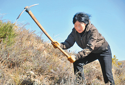為改變貧困狀況,余曉蘭和丈夫一起賣豬肉、種蘑菇。1992年,右玉縣鼓勵農(nóng)民開發(fā)“四荒”。她就和丈夫盤算:承包下荒灘,種上果樹三五年就能見效益;承包荒山種樹,幾十年以后養(yǎng)老就不用愁了,還能給孩子們留下一片綠色。于是夫妻倆就承包了門前的30畝亂石河灘和村莊前面的4000畝荒山荒坡。