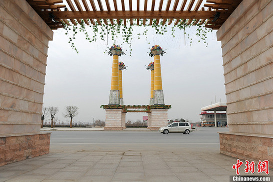 28日,針對網絡盛傳的西安市周至縣酷似巨型香煙的北大門景觀,記者趕赴周至縣采訪。周至縣回應稱,縣城北大門項目為大周萬景商貿城建設項目的一部分。大周萬景商貿城建設項目作為2011年周至縣招商引資的城市建設項目,符合縣城規劃要求。近日,有關“陜西貧困縣百萬建造北大門似巨型香煙”的帖子在貼吧、論壇及微博上流傳,引發網絡熱議。圖為北大門“景觀”。
