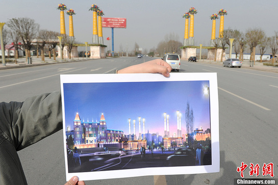 28日,針對網絡盛傳的西安市周至縣酷似巨型香煙的北大門景觀,記者趕赴周至縣采訪。周至縣回應稱,縣城北大門項目為大周萬景商貿城建設項目的一部分。大周萬景商貿城建設項目作為2011年周至縣招商引資的城市建設項目,符合縣城規劃要求。近日,有關“陜西貧困縣百萬建造北大門似巨型香煙”的帖子在貼吧、論壇及微博上流傳,引發網絡熱議。圖為建成后的效果圖。