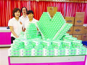 40多分鐘過去,幾組選手們陳列完畢,有搭成城堡狀的抽紙、火箭狀的啤酒,但最有匠心和技巧的,是用500多支牙膏搭成的心形圖案。白綠相間的牙膏在這樣的擺放下顯得格外醒目,讓人眼前一亮。最終這個小組獲得了冠軍,而范韶華正是隊長。