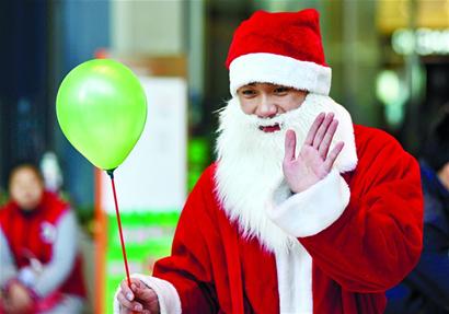 ????據介紹,目前打工的圣誕老人多數是通過網上直接找活,一些商家會在圣誕節前在網上打出招聘啟事,許多學生就會前來應征。更多的是院校的學生會成立類似社會實踐社團的組織,通過不同渠道聯系到一些勤工儉學機會,安排大學生去當圣誕老人。“忙活一個小時也就賺個一二十元,真不算多,我們就是圖個樂和。”在一家星級酒店當圣誕老人的大三學生小徐說,一個月前他和許多同學開始陸續上崗,最初一般都是晚飯前后,臨近圣誕節這幾天是全天上班,甚至晚上還要加班到八九點。“挺開心的,藏在大胡子后面裝可愛,平時很難找到這種感覺。”小徐笑著說,他覺著賺錢只是一方面,開心才是最重要的。(記者 趙健鵬)