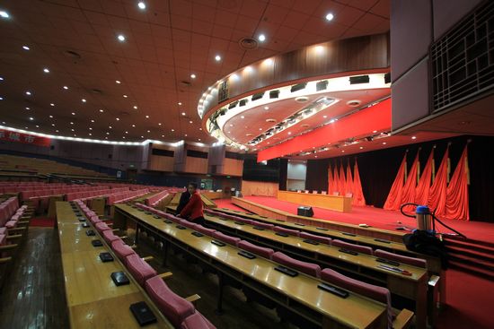 7、簡化會場和房間布置。大會會場、各會議室和房間不擺放花草,所有會議室和房間不擺放水果,各代表團分組審議的會議室不制作背景板、不掛會標、不擺席卡,駐地的走廊大門、餐廳不進行裝飾,不在會場和駐地樓外懸掛橫幅,不擺放彩球和拱門。