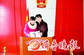 ????9點多的時候,新啟用的婚姻登記大廳迎來了第一對前來登記的新人。在抽號機上抽了號碼后,兩人來到二號窗口辦理結婚登記。新娘郝曉娜告訴記者,丈夫王磊是黃島人,他們倆在一個單位工作。“我們今天一早先去了紫金山路的婚姻登記處,看到張貼的搬遷通知就趕過來了。我們選在今天登記是因為今天是我的生日,沒想到還是第一對在新大廳登記的新人。”郝曉娜說,這讓他們的登記更有紀念意義了。