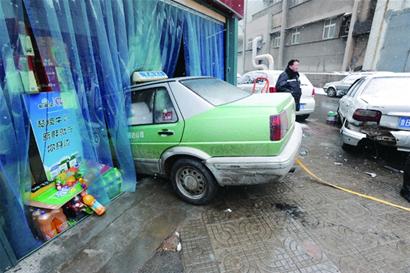 “當時就聽到門外傳來一陣刺耳的剎車聲。”超市老板說,接著有人大喊:“快讓開!快讓開!”他還沒來得及放下手中的報紙,忽然一聲巨響,讓他驚訝的是,一輛出租車撞破超市大門后,筆直地沖進了店內才停下,而車前輪距離他所坐的座位只有不到5厘米的距離。當時店內還有客人在購物。當時站在路邊的李先生也目睹了此事:“出租車沿著鐵山路從南往北開,起亞轎車沿著青城路自西向東開,由于路滑兩車在路口相撞,出租車改變方向,碾過臺階,上了人行道,然后沖進了超市里。