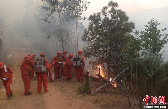 2月7日,云南省大理森警支隊的官兵在滅火。新華社 胡曙利攝