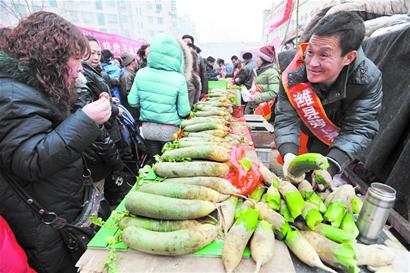 ????還有一些蘿卜攤販為展示自己的蘿卜新鮮,甚至把蘿卜連同地里的泥土一同裝進花盆,擺在蘿卜銷售攤前“大秀品質”。(記者 趙健鵬 通訊員 歷鵬)