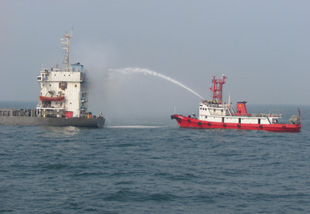 到達災船失事海域后,按照隋局長命令,同“海巡11”輪進行聯絡,請求靠近災船,進行火情偵查。但是海事局指示:由于災船已經進行二氧化碳封艙滅火,要求該局消防船原地待命,繼續觀察火情。鑒于這種情況,消防船在安全海域進行待命,隨時等候出動命令。