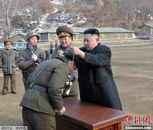 ????當地時間2月20日,朝鮮人民軍最高司令官金正恩視察了榮獲吳仲洽7團稱號的朝鮮人民軍第323部隊,檢查了軍隊裝備情況,并送給部隊雙筒望遠鏡和自動步槍。