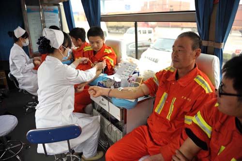 ????與此同時,集團董事長、總裁、黨委書記鄭明輝連夜安排集團工會主動與青島市中心血站聯系,明確表示,只要需要,立即組織職工無償獻血。傷亡事件,更是牽動著青島港千千萬萬職工的心,11月23日一早,600多名海港職工聞訊趕到前灣港區獻血現場,自發組成獻血隊伍。由于大大超出血站50-100人的要求,根據血站實際需要,首先安排了來自前港公司53人、物流公司39人、QQCTU23人、QQCT20人、實華公司20人,共安排155名海港職工參與獻血。五個基層單位一把手高度重視,積極組織,獻血人員中既有風華正茂的年輕員工,也有五十多歲的海港老職工;既有在家專程趕來的員工,更有家屬。截至下午13時,集中獻血50760毫升,不僅及時滿足了傷員的需要,更充分體現了青島港職工災難面前血濃于水的深厚感情和強烈的社會責任感。據港方相關領導介紹,他們還仍將繼續與青島市中心血站密切聯系,隨叫隨到,全力以赴確保傷員用血需求。