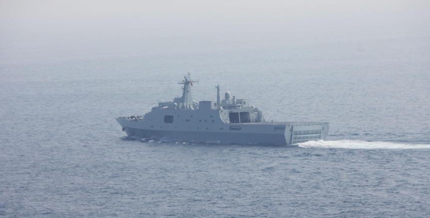 ????3月9日下午,井岡山艦在趕赴馬航航班失聯(lián)海域參與搜索救援的途中。經(jīng)中央軍委批準(zhǔn),中國(guó)海軍派出艦艇參加馬來(lái)西亞航空公司失聯(lián)航班救援行動(dòng)。3月8日晚11時(shí)50分,正在南沙海域執(zhí)行任務(wù)的導(dǎo)彈護(hù)衛(wèi)艦綿陽(yáng)艦奉命起航趕赴馬航航班失聯(lián)海域。9日凌晨3時(shí),海軍兩棲登陸艦井岡山艦從湛江軍港緊急起航。(中新社發(fā) 尹海明 攝)