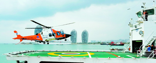 ????3月9日,中國(guó)海事直升機(jī)降落在“海巡31”船上。當(dāng)日南海最大海巡船“海巡31”前往失聯(lián)航班疑似墜落海域搜救。