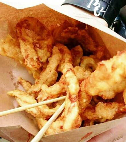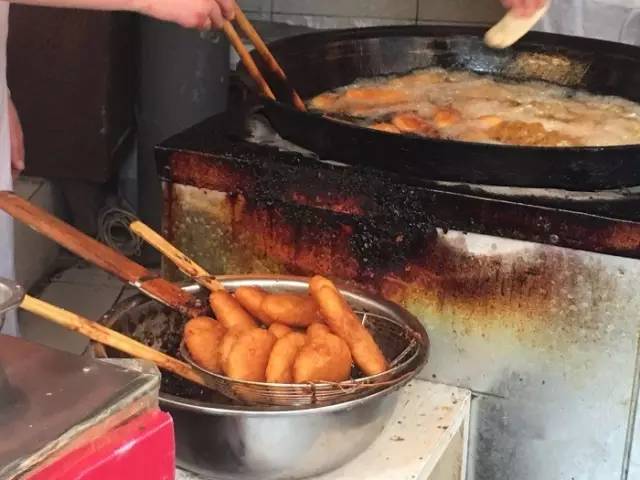 位于團島早市里面,進了早市往右邊轉,一直往里走。他家炸糕分兩種餡料,一個是糖,一個是豆沙餡的。1塊5毛錢兩個,大家也基本上都買白糖的。熱呼時吃面軟軟的,餡往外流,外面那層皮還酥酥的。豆沙的是長條的,比較像棗泥,也依然很酥脆甜糯。