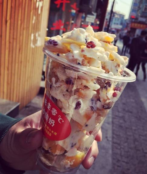 只有一個小窗口,可以看見里面炒酸奶的全過程哦!店里有兩種酸奶,一種是原味的,一種是莫斯利安酸奶,里面放了很多紅豆,葡萄干,花生碎,芝麻等等的,吃起來特別香特別爽,和冰淇淋相比,熱量低很多,所以非常適合減肥的妹子!