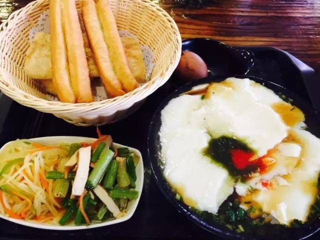 青島本地老字號,主打菜豆腐腦的味道很是不錯,里面有肉塊、黃花菜等非常豐富。另外還有小菜可選擇。可以配一個火燒,他家的火燒好焦好酥,層次分明,配上咸咸的豆腐腦正好。