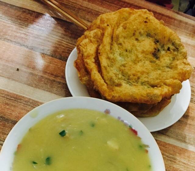 青島港上有名的早餐,聽說每天都要排很長的隊,風雨無阻!餡餅有蘿卜跟肉餡兩種、肉餡比較有味道,提前腌過的,蘿卜就比較清淡一些~甜沫很濃厚,這點給贊。里面有花生仁,豆腐干,肉,還有菜葉子,配著餡餅,非常帶勁。