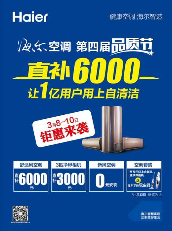 活動地點:青島、濰坊、日照各大家電賣場海爾專柜