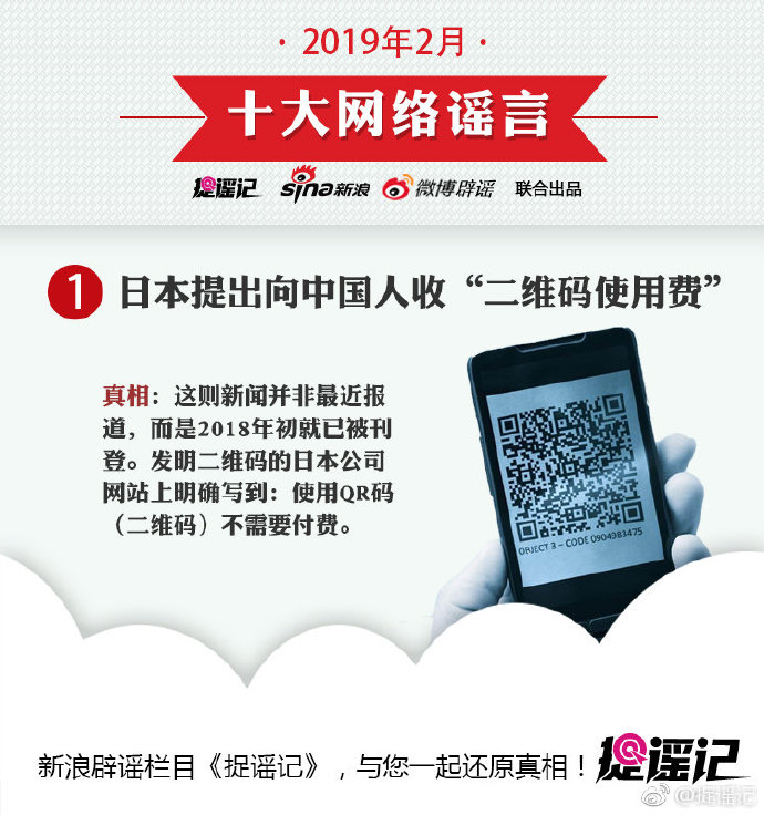 2月份不平靜,各類謠言蠢蠢欲動,“日本提出向中國人收‘二維碼使用費’”的假消息一度引熱議,“公攤面積”要取消、“游泳將納入中考體育必考項目”等不實消息令不少網友上當。捉謠記梳理了2月份十大網絡謠言,來看你有沒有被忽悠。