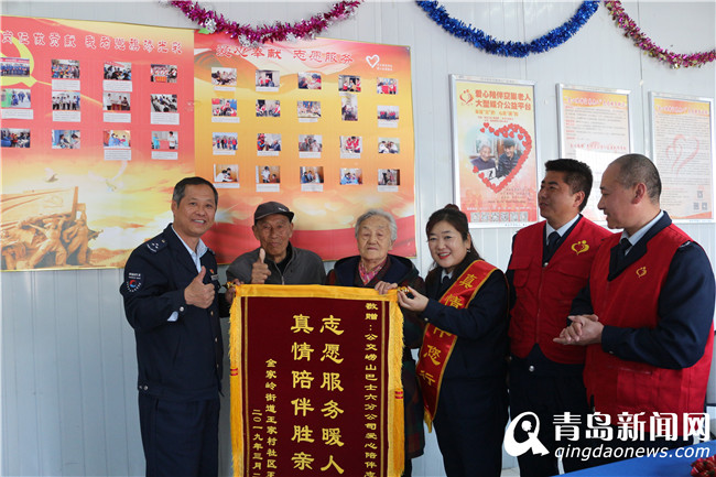 志愿者們選擇了單位附近的小麥島公園,老人們也想?yún)⒂^一下志愿者們的工作環(huán)境。王淑蘭阿姨特意帶著繡著“志愿服務(wù)暖人心,真情陪伴勝親人”的錦旗送到公交嶗山六分公司志愿者們手中,感謝志愿者多年來的真情陪伴。曲大爺看著會(huì)議室“愛心陪伴”宣傳欄里的照片說“這一晃也有五六年時(shí)間了吧,感覺你們就是我的兒女一樣親”。