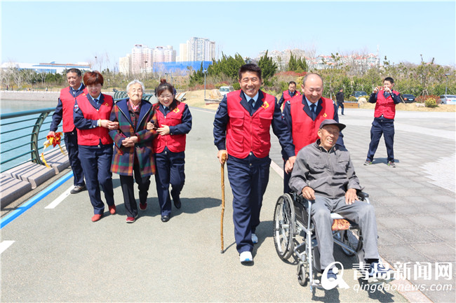 志愿者陪著老人沿著青島海岸線瀏覽,沿途青島的海岸風(fēng)光盡收眼底,讓老人目不暇接,他們一路走來,有說有笑,“愛心陪伴”志愿者的紅馬甲著裝在海岸線形成一道亮麗風(fēng)景,來往的游客紛紛投來贊許的目光。在櫻花大道老人欣賞春天美景,櫻花和玉蘭花競(jìng)相開放,曲大爺感慨說“春天就應(yīng)該多到戶外走走,呼吸一下新鮮空氣”,許久沒有出門了,是你們這些“兒女”領(lǐng)著我們領(lǐng)略這么好的美景,太謝謝大家了。