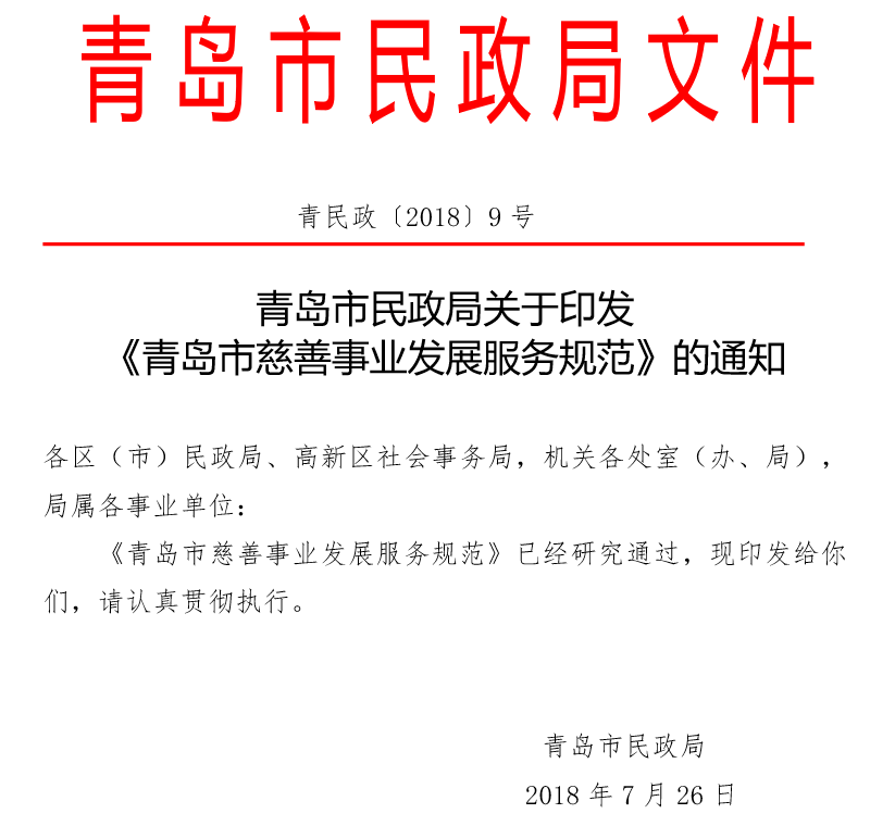 青島市民政局辦公室2018年7月26日印發