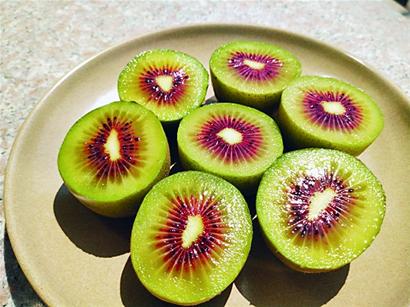 用心的栽培,換來的是長勢喜人。油油綠葉中,一串串毛茸茸的獼猴桃讓人一看就忍不住想摸一摸,甚至摘下來大吃幾口?!艾F在早熟品種——紅心獼猴桃已經開始成熟,這幾天我們正忙著采摘?!备倒鹦勒藥讉€獼猴桃讓記者嘗嘗,果然又軟又甜,果肉有入口即化的感覺。傅桂欣又摘了幾個果子,讓工作人員拿到實驗室檢測一下糖度。傅桂欣說,通常情況下,她家品牌的獼猴桃甜度能高達17度以上,遠遠超過市面平均水平。