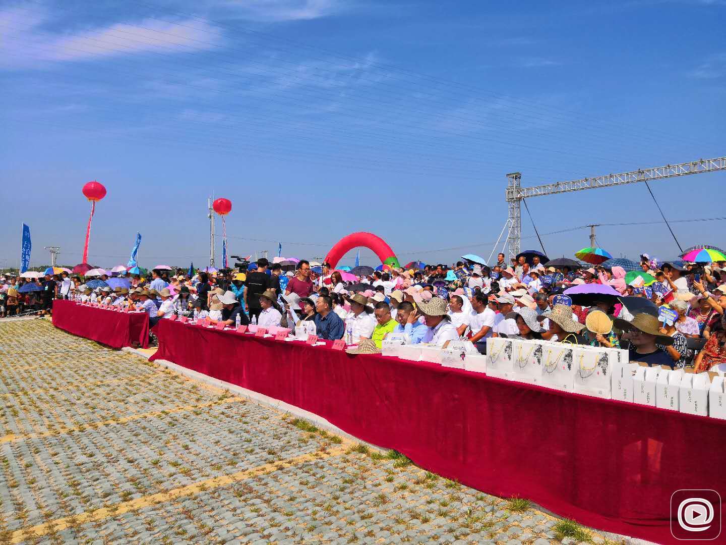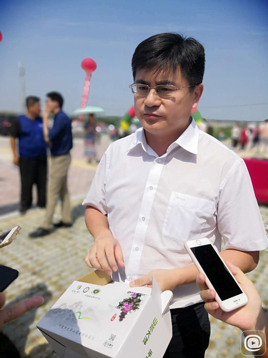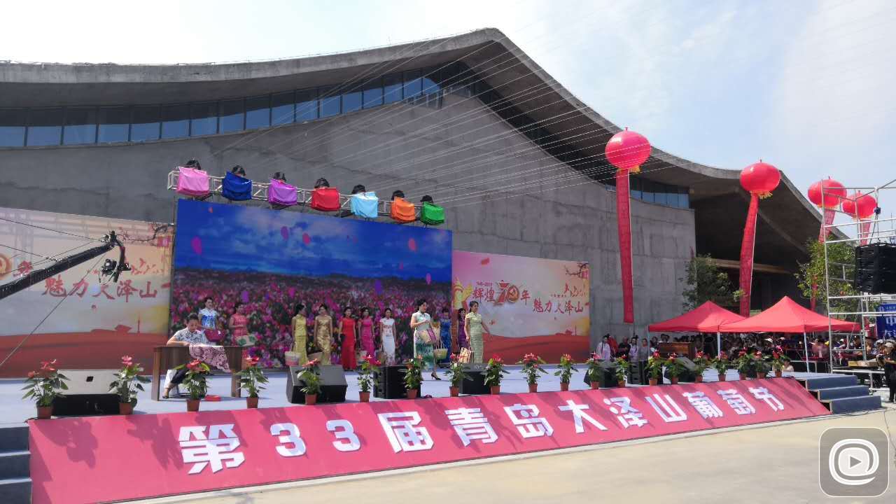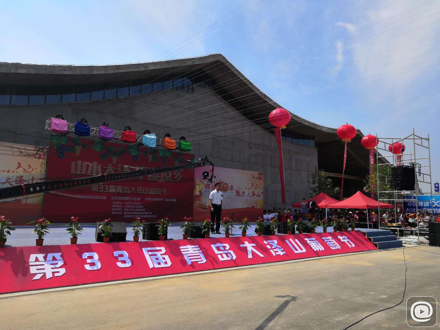 平度市副市長徐廣舉上臺宣布本屆大澤山葡萄節(jié)開幕。