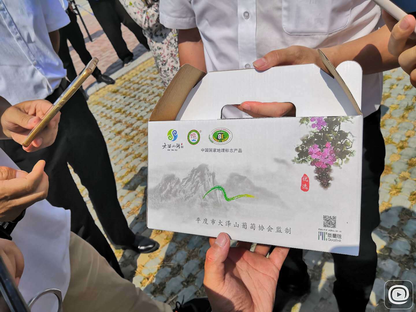 浪潮質(zhì)量鏈科技有限公司副總裁付金濤現(xiàn)場解讀大澤山葡萄的“身份證”,目前已經(jīng)實現(xiàn)可掃碼追溯葡萄的產(chǎn)地、合作社及檢驗證書。下一步,“身份證”還將升級,葡萄的選種、培育的全過程甚至葡萄的甜度都可以掃碼了解。