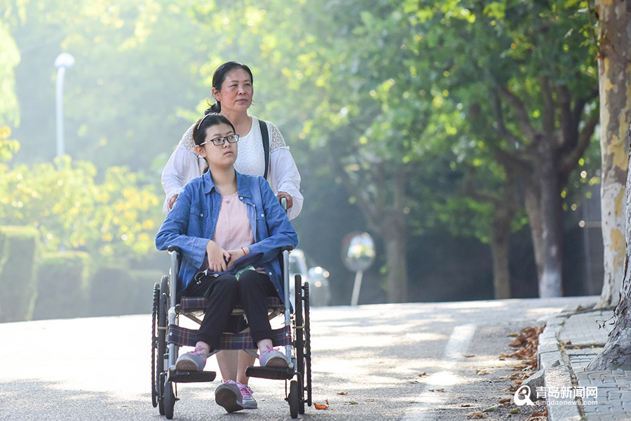 開學前,東曉和新同學已在“班級群”中認識。她坦然說出自己的情況:“我身體不好,需要坐輪椅。”“同學們都很熱情,開學后,我邀請了大家來宿舍玩。”閑暇時,東曉媽媽就會推著她到操場林蔭處看大家軍訓。面對操場上浩浩蕩蕩的軍訓大隊,東曉一眼便能找到自己的班級。