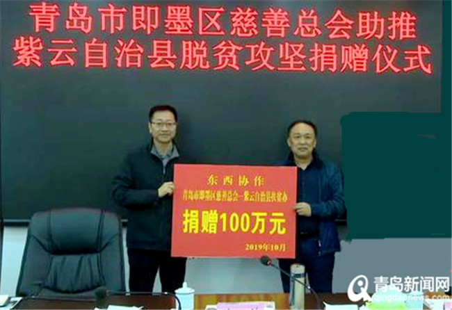 隨后舉行的捐款儀式上,即墨區(qū)慈善總會(huì)向紫云縣捐贈(zèng)慈善資金100萬(wàn)元。