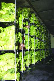 在故鄉(xiāng)農(nóng)產(chǎn)的廠區(qū)里采訪,發(fā)現(xiàn)占地最多的還是冷庫(kù)。企業(yè)相關(guān)人員介紹說(shuō),白菜等好多蔬菜都是季節(jié)性產(chǎn)品,冷庫(kù)里存放的多是青島本地的大白菜 等蔬菜。因?yàn)檫@個(gè)季節(jié)生產(chǎn)的白菜口感最好, 而企業(yè)需要一年四季都生產(chǎn)泡菜,因此現(xiàn)在除生產(chǎn)泡菜外,還在存儲(chǔ)大量的白菜等,以適應(yīng) 一年的生產(chǎn)。以白菜為例,一天需要3萬(wàn)斤,一 年的白菜需求最約為5000噸,也就是約一千萬(wàn)斤。這么大的需求量,必須要有冷庫(kù)支持。目前企業(yè)建成了3000多噸的冷庫(kù),如果生產(chǎn)量再大,還要加大面積。