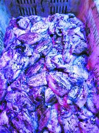 在市場看到鮮墨魚有兩種,一種是顏色潔白,又大又漂亮;另一種是墨魚身上沾滿了黑糊糊的墨汁。這兩種墨魚的價格差不多,顏色發白的墨魚價格每斤還要便宜1-2元。根據個頭的大小零售價格都在20-28元。記者在鎮江北路農貿市場遇到祥子家水餃店負責人劉明,該店的餃子有好多種,主要食材他親自選購。劉明告訴記者,買身上帶墨汁的墨魚,顏色發白很好看的墨魚不要買。他介紹說,帶墨汁的墨魚是剛從船上運到市場的,顏色發白的墨魚經過淡水沖洗浸泡,雖然顏色好看,但是墨魚肉里水分含量大,口感也差。還有的業戶加堿水浸泡,這樣墨魚的重量會擴大很多,一斤墨魚可以泡到一斤半重。 如何辨別鮮墨魚質量的好壞呢?劉明介紹了三個妙招:一看:質量好的墨魚體形平展、寬厚,色澤光亮,散發著一股鮮香味。局部有褐斑,表面暗白色,背部呈暗紅色的可能質量有問題,購買應謹慎。二壓:按壓一下墨魚的膜,好墨魚的腹膜緊實、有彈性。三扯:扯一下墨魚頭,頭與身體連接緊密,不易扯斷的為好墨魚。