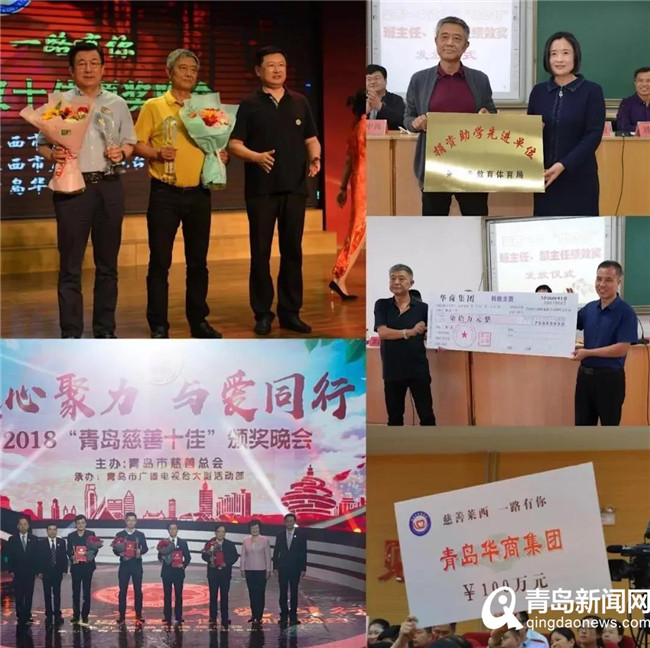 2018年,青島華商集團先后捐贈170余萬元用于各項社會救助及公益慈善事業,彰顯了企業的社會責任感。近年來,青島華商集團通過資助貧困大學生、資助貧困孤兒、助教萊西一中、資助貧困戶、捐助馬連莊中學、捐資扶貧等形式,累計捐款已逾600萬元。公司先后獲得“萊西市希望工程愛心助學先進單位”、“尊師重教先進單位”、“捐資助學先進單位”等榮譽稱號。2018年6月,青島華商集團被萊西慈善總會評為“萊西市慈善十佳單位”,董事長趙永愛被評為“萊西慈善十佳個人”,2018年12月青島華商集團被青島慈善總會評為“青島市慈善十佳單位”。