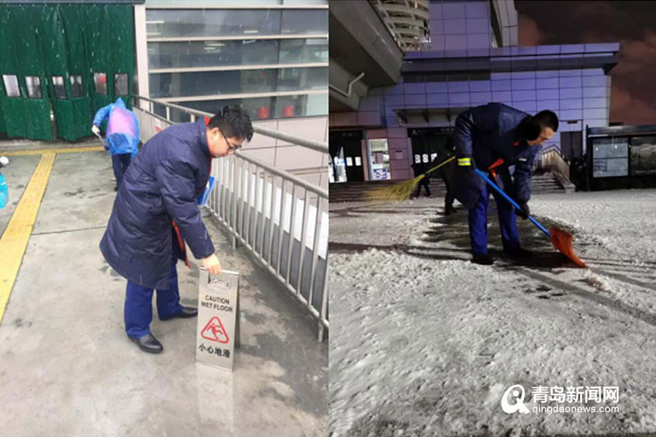 此外,地鐵3號線君峰路站的工作人員不僅為乘客提供愛心雨衣,還為乘客送上熱水,以實(shí)際行動為乘客送去溫暖;青島北站一位輪椅乘客在站內(nèi)緩慢前行,細(xì)心的工作人員看出老人的腿腳不太方便,主動幫助老人將其護(hù)送出站,成為冰天雪地里的一處溫暖的風(fēng)景。
