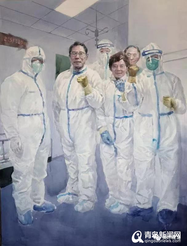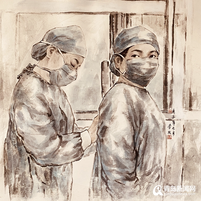 青島畫院的書畫家們用自己的畫筆描繪醫務人員奔赴一線、馳援武漢,社會各界捐款捐物、大愛無疆,人民群眾同心協力、守望相助,基層干部值班值守、排查服務等美術作品,集中呈現出這個特殊時期的精神圖譜。