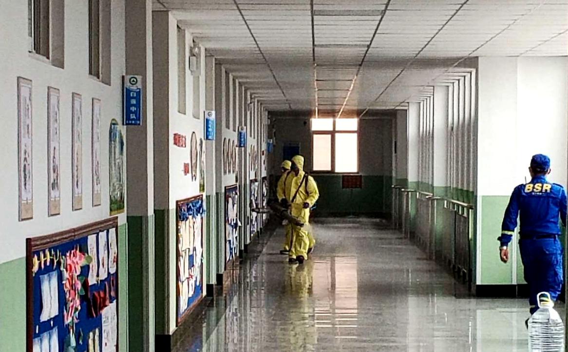 “六一”期間,正是即墨區小學生復學的日子,藍天救援隊受部分學校的委托,派出專業人員對開學前的校園、教室開展無死角消殺防疫工作,確保師生開學后能安全上課。