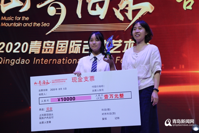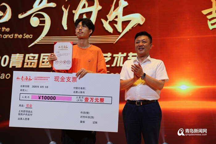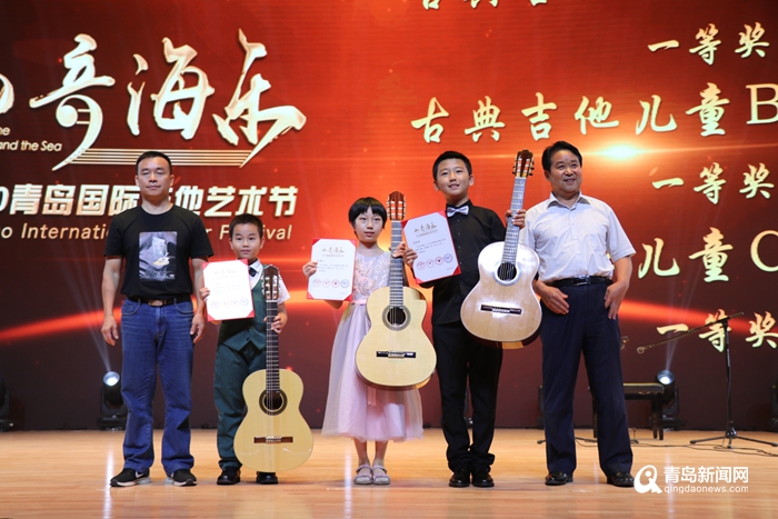 頒獎典禮上,中共嶗山區委常委、宣傳部部長王洵揭曉了本屆吉他藝術節大賽指彈組一等獎的獲獎人選,并給獲獎者頒發了榮譽證書。