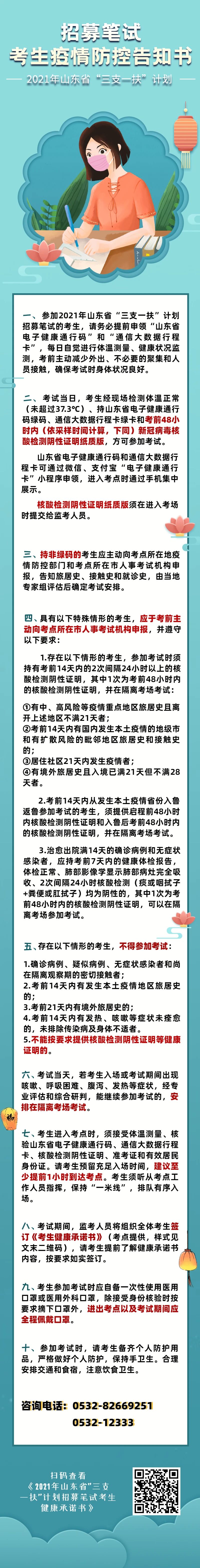 擴散!2021年山東省“三支一扶”計劃招募考試最新疫情防控要求公布