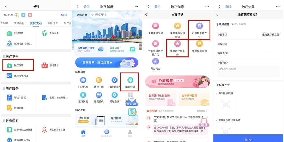 青島新聞網12月3日訊 生育醫療費用是職工生育期間一項重要社會保障待遇。為確保生育職工能夠及時享受生育待遇,提升職工生育醫療費用申報效率,“愛山東·青e辦”整合接入了青島醫保“生育醫療費支付”掌上申報渠道,實現辦事人員“零跑腿”。