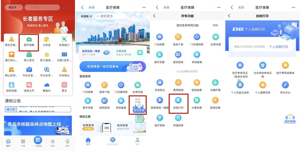 青島新聞網3月14日訊 工作中換工作異地求職、生活中落戶、購房或辦理居住證時,經常需要提供原參保地的醫保參保憑證或社保參保證明。為方便市民辦事,真正讓數據多跑路,群眾少跑腿,“愛山東·青e辦”上線了市醫保局“醫療保障”服務,其中的“自助打印”可實現參保憑證及證明材料的掌上查詢和下載,不用跑窗口即可居家自助打印或就近打印。
