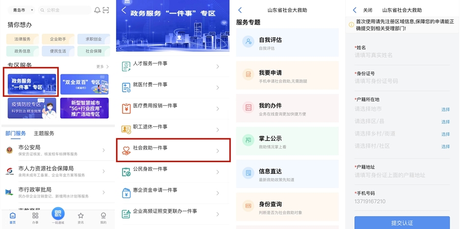 青島新聞網9月3日訊 為方便困難群眾救助申請,改變“來回跑”“到處問”的局面,“愛山東·青e辦”APP政務服務“一件事”專區上線了“社會救助一件事”,實現了救助事項的“掌上辦”“指尖辦”。