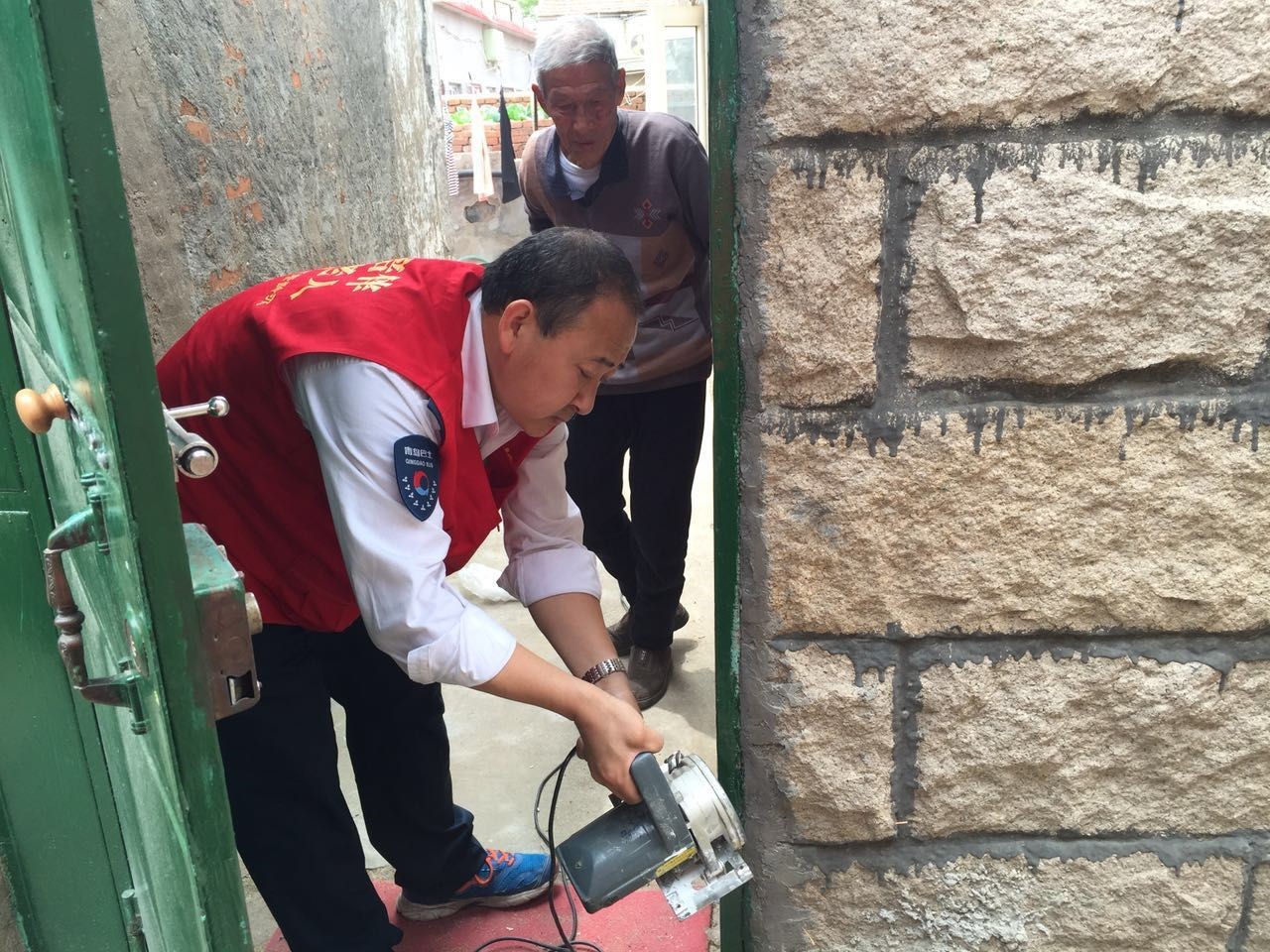 在以后的陪伴中,我就開始細心地觀察,有時候與老人的交談中也暗中打探老人有沒有需要的東西,了解情況后我們都會積極努力地去幫老人解決困難。夏天,我們?yōu)槔先嗽鹤永锎钇鹫陉柵铮欤瑸槔先嗽鹤永锏乃芗由媳孛蕖C恳患虑槎际羌毿挠^察,用心去做!我們結(jié)對的空巢老人中有位叫曲方平的大爺,性格開朗,非常健談,但是有一件事情困擾著大爺十幾年,曲大爺年屆九旬,聽力不好,曲大爺家有一個院子,老人獨居屋內(nèi),院子的鐵門從里面鎖上,有人來敲門,老人聽不見,外面的人就非常著急,所以曲大爺就問我們志愿者有沒有什么好辦法幫他解決這個難題。我得知大爺?shù)倪@個心愿后,立即開動腦筋想辦法,經(jīng)過好幾天的苦思冥想,終于確定下了解決方案,我買來插銷,帶上工具,為曲大爺家的鐵門安上了合適的插銷,使鐵門里外都能打開,門打開了,也打開了曲大爺十幾年的心結(jié)。大爺試過以后感覺既美觀又實用,逢人就夸志愿者真有本事,沒有解決不了的事!我也為做了點讓老人開心的事而自豪。還有一次與曲大爺聊天得知,家里的自來水都是在早上和晚上這兩個時間段定時定點地放水,每次放水的時候,老人就用水桶接滿水再倒入水缸里,對于腿腳不靈便的曲大爺來說,不僅費時而且費力,老人身體吃不消。我回家后就開始準(zhǔn)備好管件及工具,在下一次陪伴的時候,把水管及水龍頭直接接到水缸處,這樣,在放水的時候,老人打開水龍頭,水直接流到水缸里,曲大爺就省事多了!看到老人們的笑容,聽著老人的夸贊,我們志愿者心里真是無比開心!這樣的事還有很多,像王祝才大爺家的水缸蓋,還有王淑蘭阿姨家的紗窗等等,里面都有我的身影。平凡的人做平凡的事,雖然都是生活小事,卻感動著老人們的心,志愿者們也受到社會各界的理解支持與贊揚!后來,我們316路“星語心愿愛心團隊”升級成“怡善巴士愛心團隊”,團隊在我們志愿者的共同努力下,給老人們帶去兒女般的關(guān)懷和陪伴,老人們也因為有了我們志愿者的陪伴而享受到了兒孫滿堂的天倫之樂,愛心團隊不斷有新的志愿者加入進來,志愿者隊伍不斷延續(xù)壯大。
