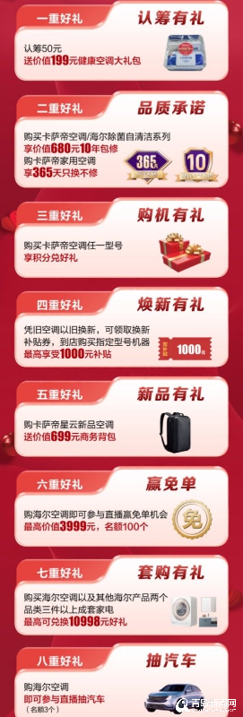 據悉,海爾&金鼎廣場海爾健康空調節活動時間從3月5日到4月5日,活動期間可享認籌送好禮、品質承諾、購機有禮、換新有禮等多重鉅惠。認籌50元送價值199元健康空調大禮包;購買卡薩帝空調/海爾除菌自清潔系列享價值680元10年包修;購卡薩帝家用空調享365天只換不修;購海爾空調即可參與直播贏免單機會,最高價值3999元,名額100個……感興趣的小伙伴可到金鼎廣場6樓的家電商場了解,“女神節”來臨,還不快給家里的她換上新家電?這次家電節千萬別錯過!