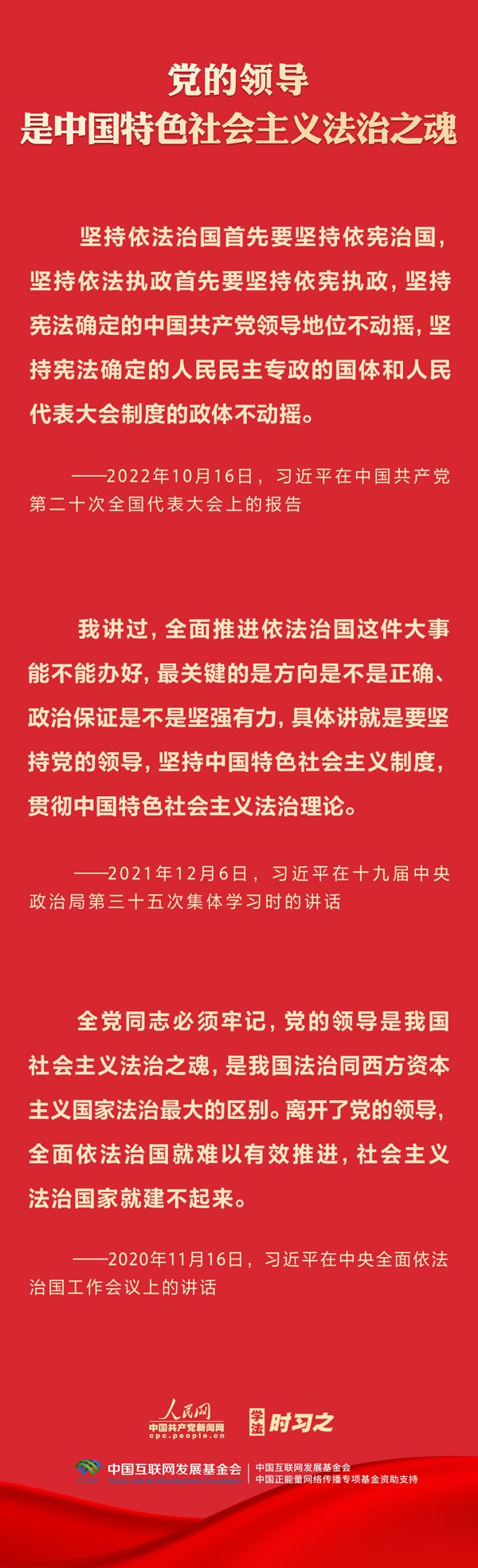今年是貫徹落實(shí)黨的二十大精神的開局之年。中共中央政治局決定從今年4月開始,在全黨自上而下開展學(xué)習(xí)貫徹習(xí)近平新時(shí)代中國(guó)特色社會(huì)主義思想主題教育。習(xí)近平法治思想是習(xí)近平新時(shí)代中國(guó)特色社會(huì)主義思想的重要組成部分,人民網(wǎng)·中國(guó)共產(chǎn)黨新聞網(wǎng)推出學(xué)法時(shí)習(xí)之·學(xué)習(xí)習(xí)近平法治思想系列策劃,本篇聚焦“堅(jiān)持黨對(duì)全面依法治國(guó)的領(lǐng)導(dǎo)”。