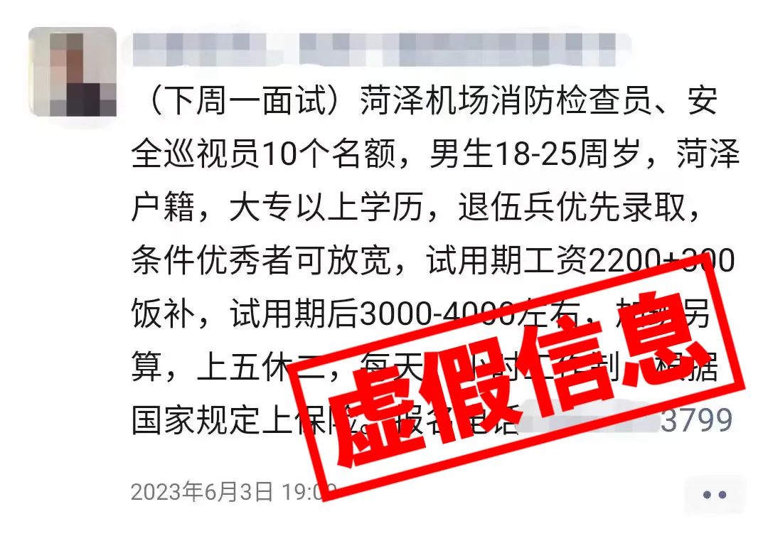 近期,山東省機場管理集團菏澤機場有限公司(以下簡稱“菏澤機場”)發現不法分子以菏澤機場的名義進行虛假招聘,通過微信、網站等渠道發布所謂的菏澤機場消防檢查員、安全巡視員等崗位的虛假、不實招聘信息,宣稱可以與菏澤機場直簽勞動合同,向求職者騙取入職費用等等。相關違法行為嚴重侵犯求職者合法權益,損害菏澤機場形象,造成不良社會影響。為保護各方合法權益,防范欺詐行為,特聲明如下: