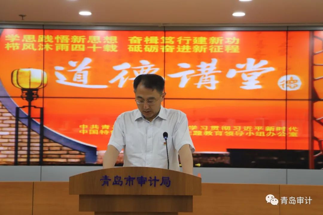 為慶祝中國共產(chǎn)黨成立102周年,深入推進學(xué)習(xí)貫徹習(xí)近平新時代中國特色社會主義思想主題教育,切實做到以學(xué)鑄魂、以學(xué)增智、以學(xué)正風(fēng)、以學(xué)促干,激發(fā)廣大審計干部在新時代審計事業(yè)中挺膺擔(dān)當(dāng)?shù)母墒录で椋?月29日,青島市審計局舉辦“學(xué)思想、強黨性、重實踐、建新功”主題道德講堂。